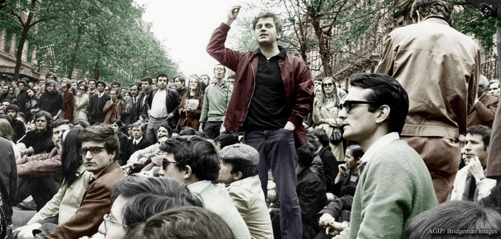 XRA1644703 Daniel Cohn-Bendit during A Demonstration For Student Protest on May 9, 1968 in Paris (photo); (add.info.: Daniel Cohn-Bendit (dit Dany le Rouge) un des leaders des mouvements etudiants icilors d’une manifestation le 9 mai 68 a Paris — Daniel Cohn-Bendit during a demonstration for student protest on may 9, 1968 in Paris colourized document); Photo © AGIP; RESTRICTIONS MAY APPLY FOR NON-EDITORIAL USE – PLEASE CONTACT US; out of copyright